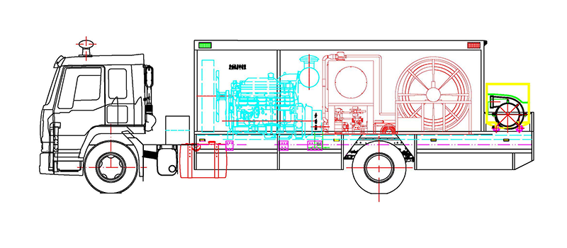 远程供水液压系统,用于远程供水车的液压驱动,包括浮潜泵、管盘、缆绳等系统。
